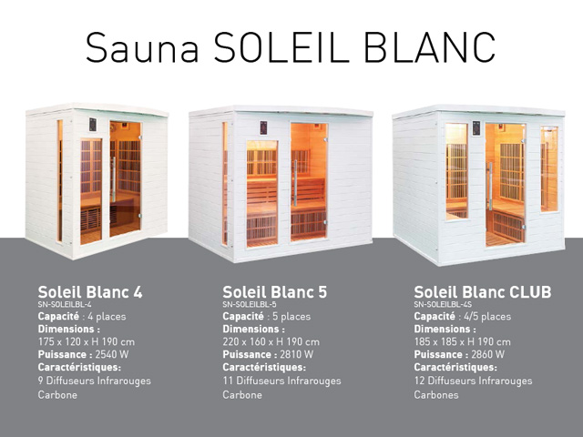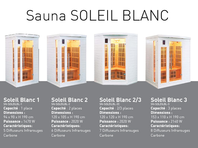 Les cabines sont équipées de panneaux de carbone. La température de votre cabine peut être réglée entre 18°C et 60°C. En 15 minutes votre cabine est préchauffée.