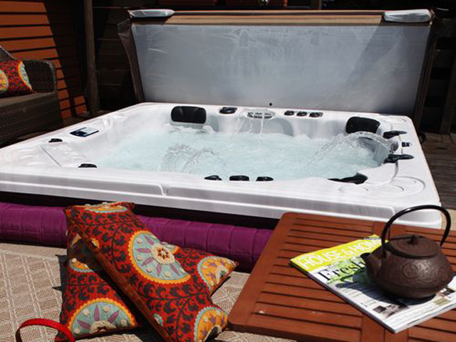 • Buses : 40 / Jets : 47 • Dim : 210 x 190 x 84cm • Nbre places : 6 (1 allongée) • Habillage : jupe résine • Coque acrylique renforcé poly.