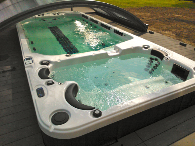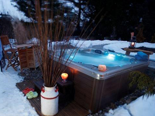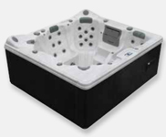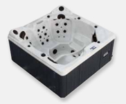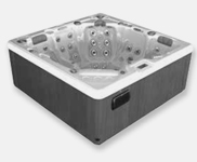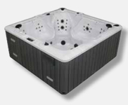 • Buses : 50 / Jets : 59 • Dim : 210 x 210 x 100cm • Nbre places : 6 (1 allongée) • Habillage : jupe résine • Coque acrylique renforcé poly.