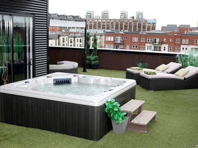 • Buses : 51 / Jets : 71 • Dim : 235 x 260 x 97 cm • Nbre places : 6 (1 allongée) • Habillage : jupe résine • Coque acrylique renforcé poly.